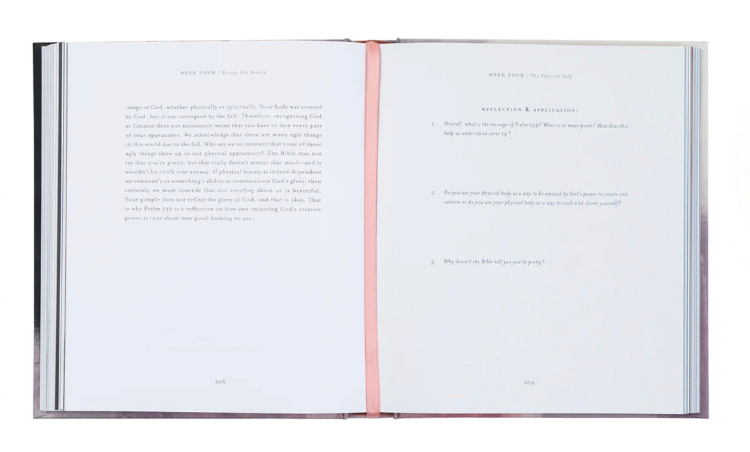 Each week focuses on a different aspect of our true, biblical identity, whether that be our brokenness, our redemption, or even our physical selves. Each week provides six studies contrasting a common sentiment in society with a biblical truth. After reading the given passage of Scripture and commentary, readers are given reflection questions to verbalize and apply what they are learning. May we all learn to truly see ourselves and the world through the eyes of God!