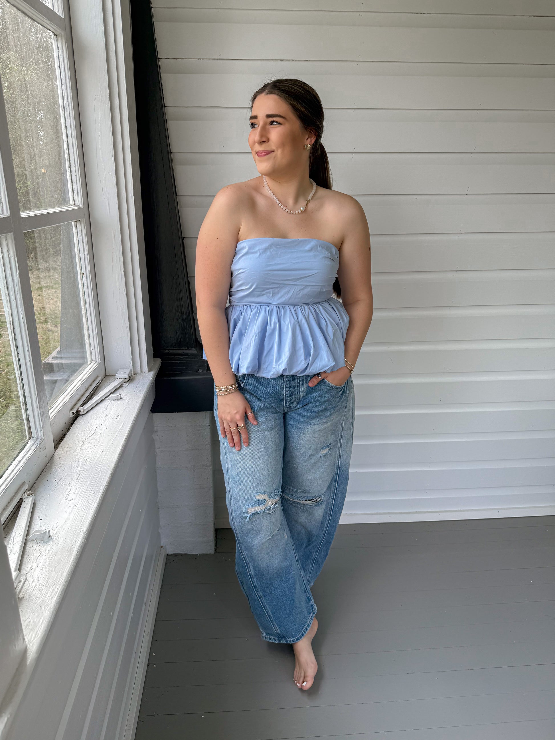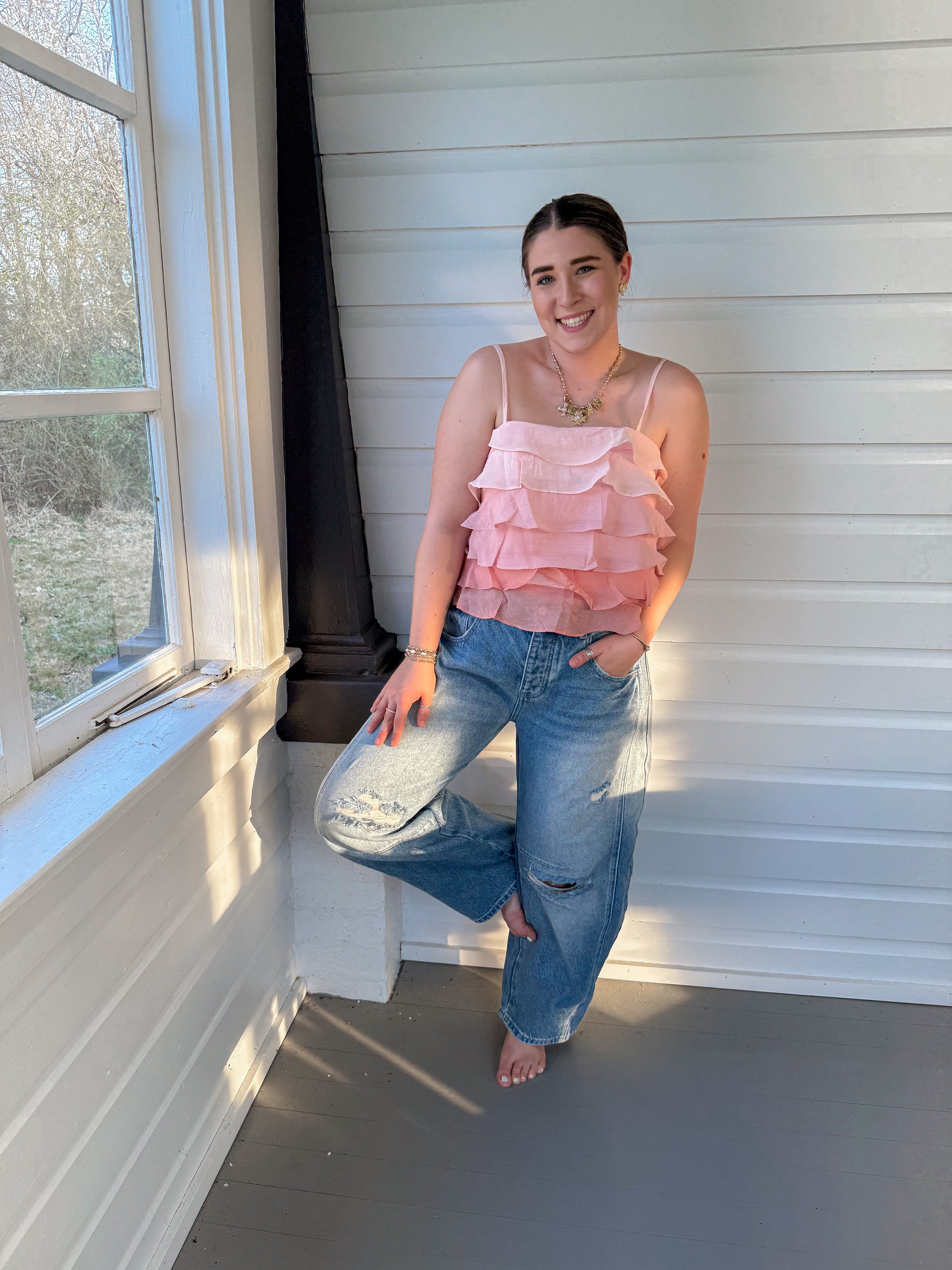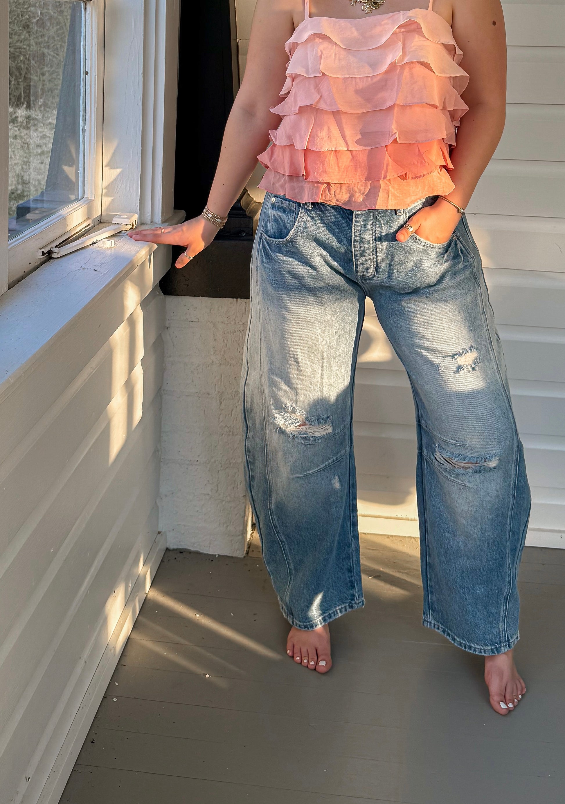 DISTRESSED BARREL JEANS