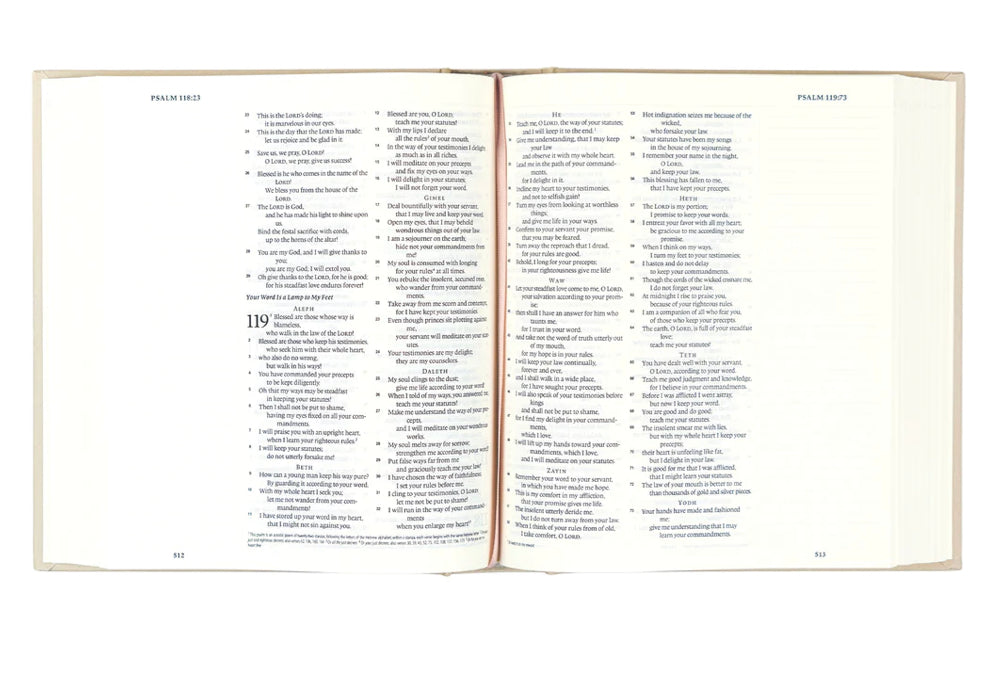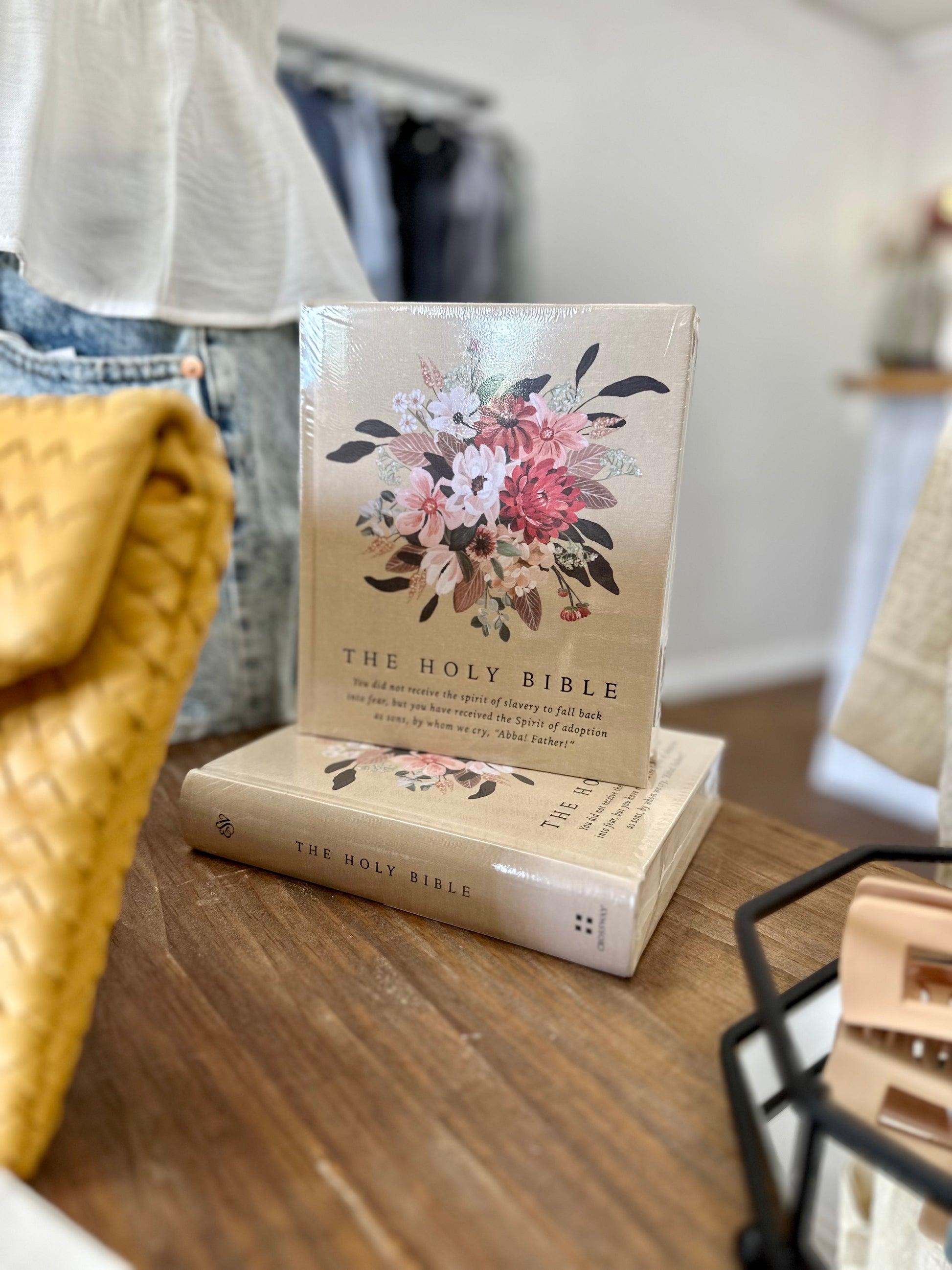 The gorgeous flower arrangement on this Bible was inspired by the vibrancy of the architecture and culture in Salamanca, Spain. The front of this Bible features scripture from Romans 8, with the complete passage on the back cover. We pray this Bible will inspire awe as you read God’s Word and learn of Christ as he is offered to you in the gospel.