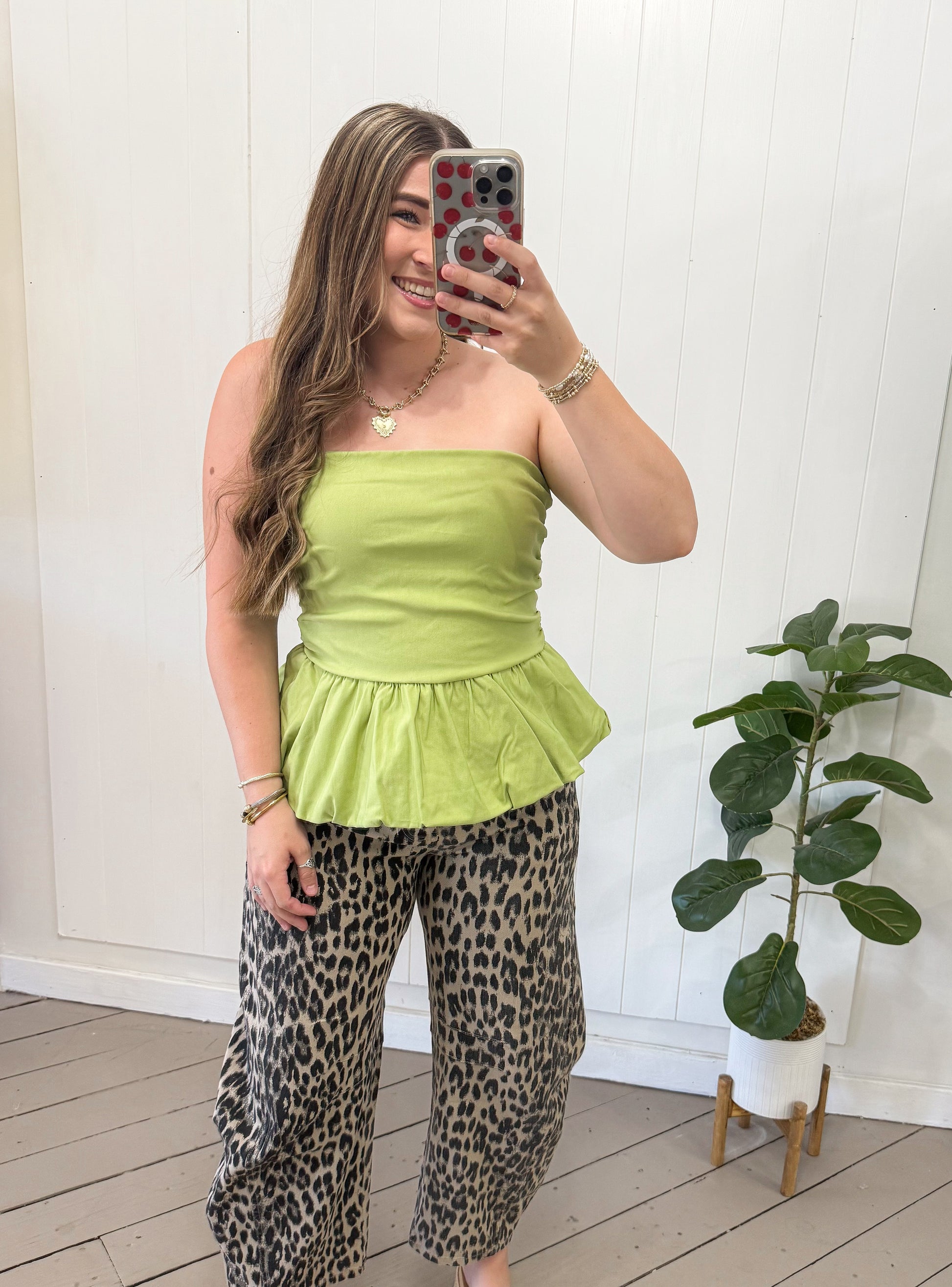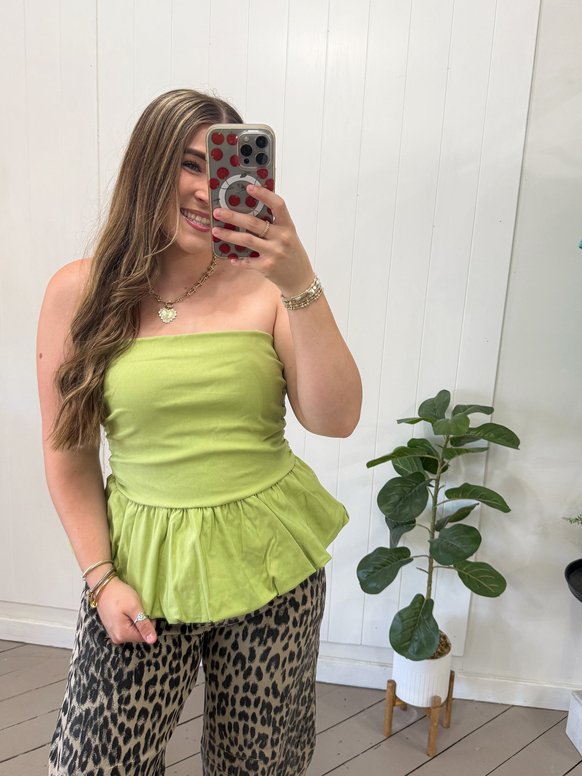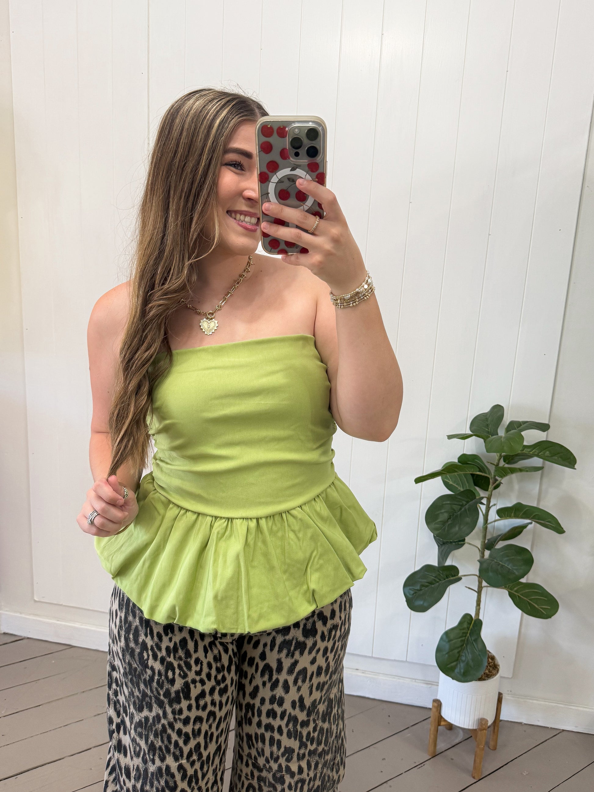 GREEN BUBBLE HEM TUBE TOP