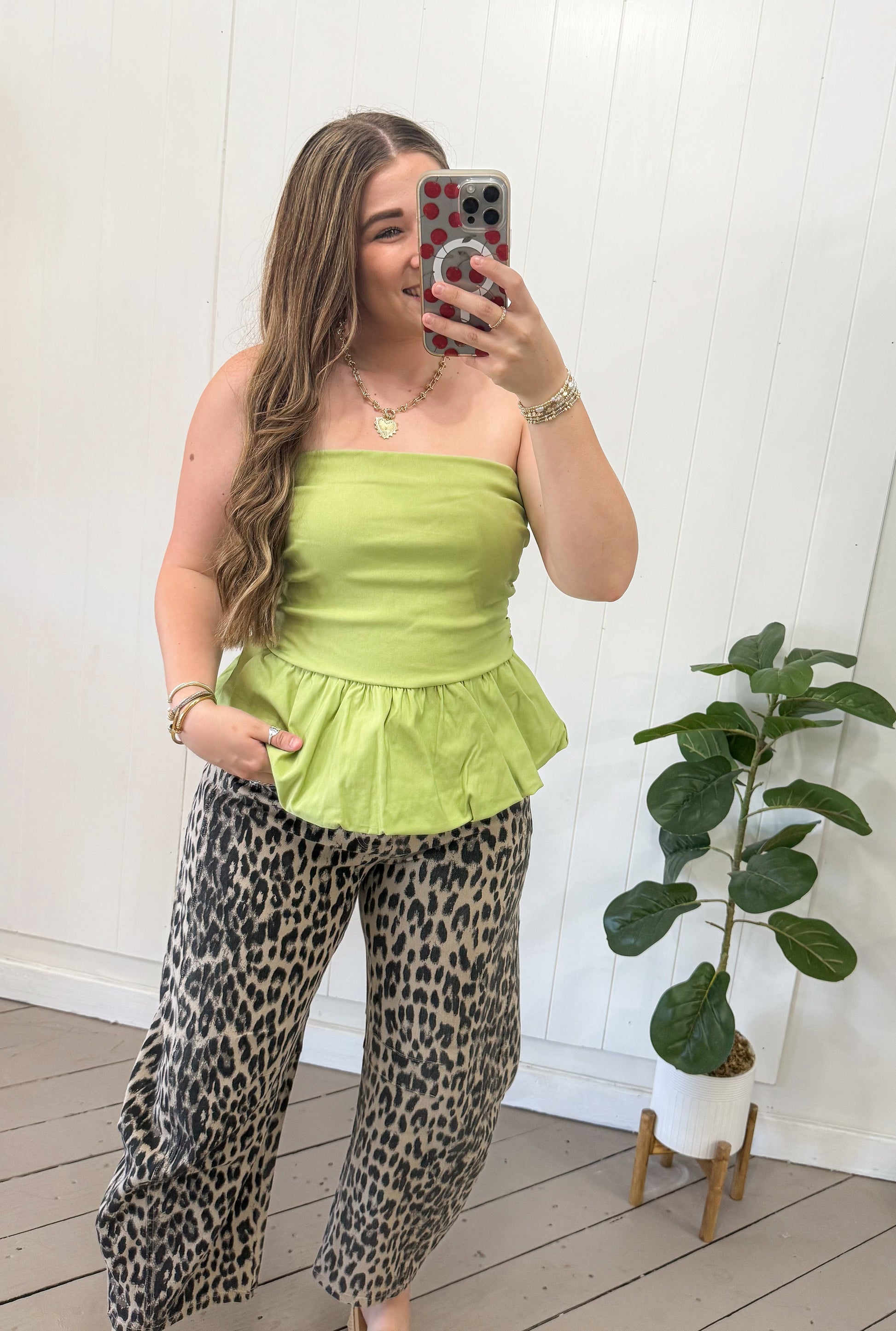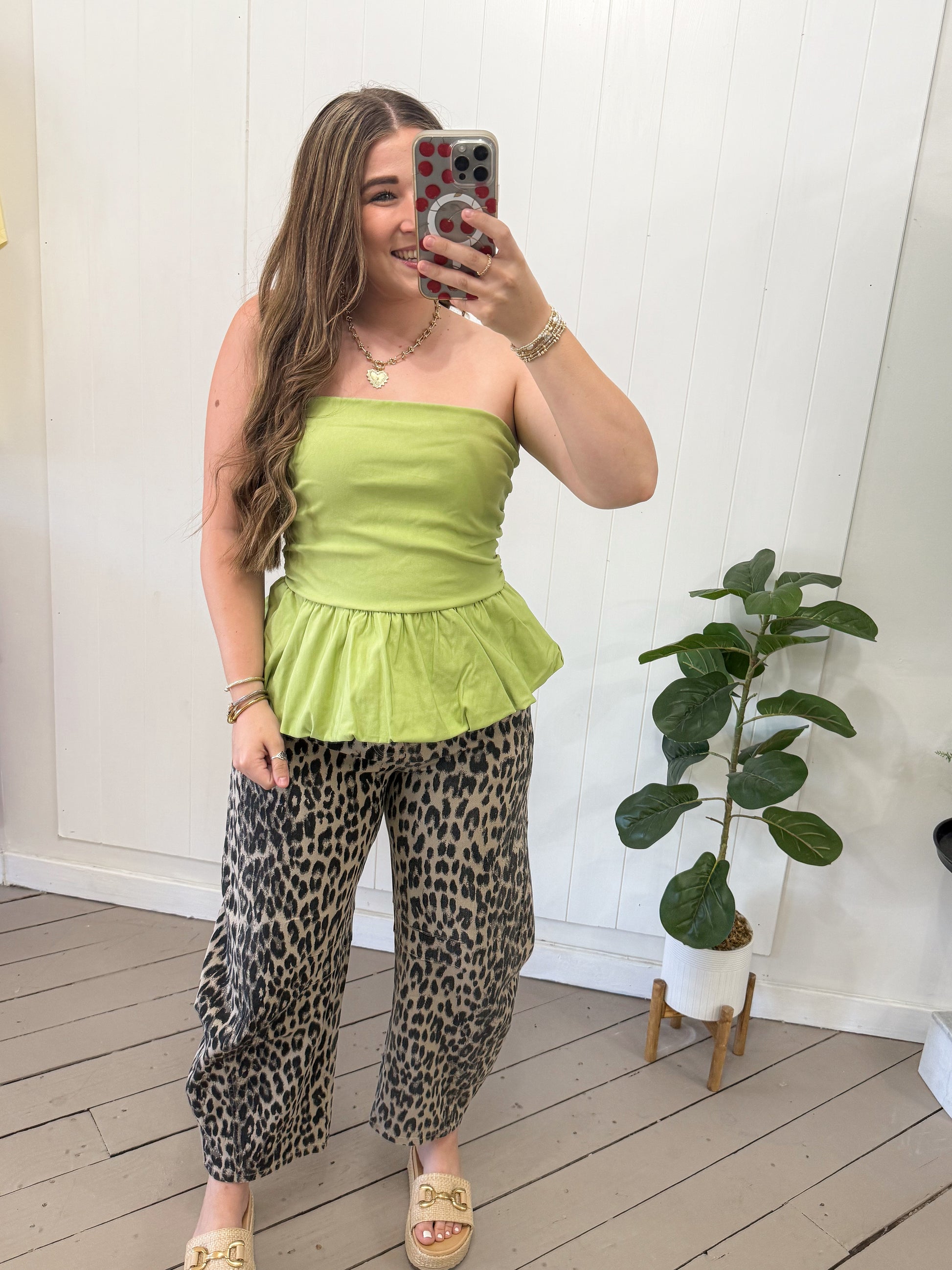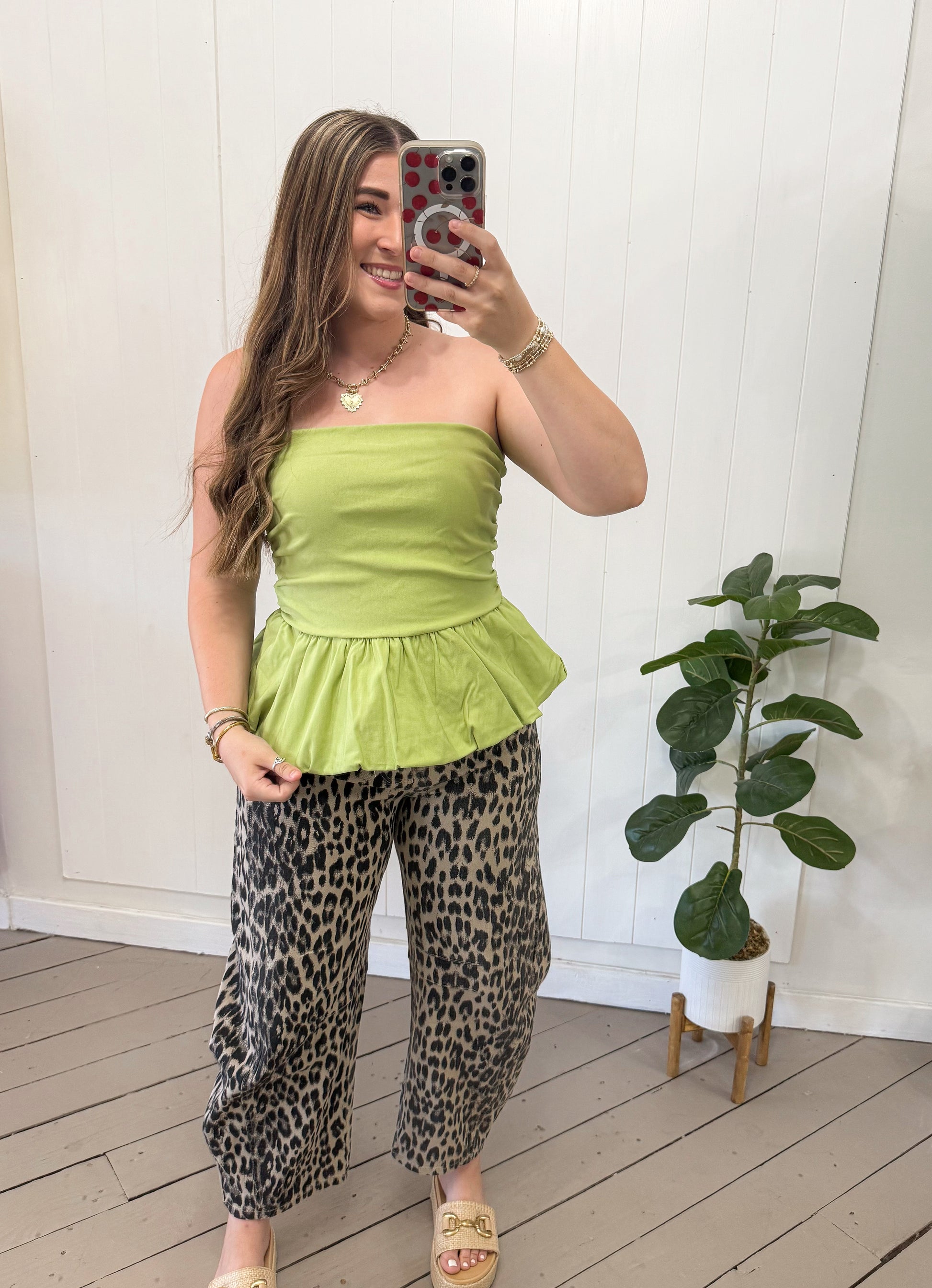 GREEN BUBBLE HEM TUBE TOP