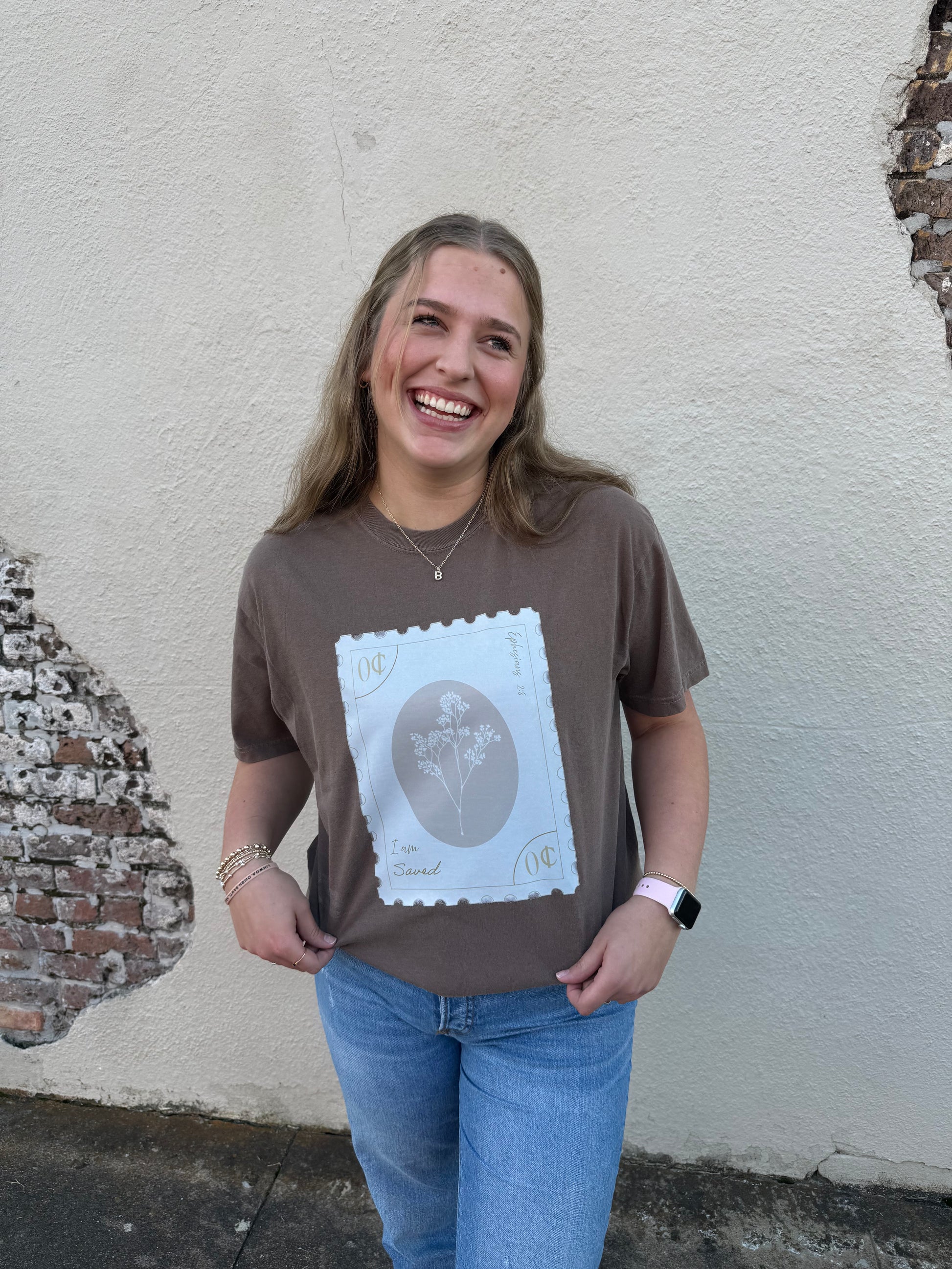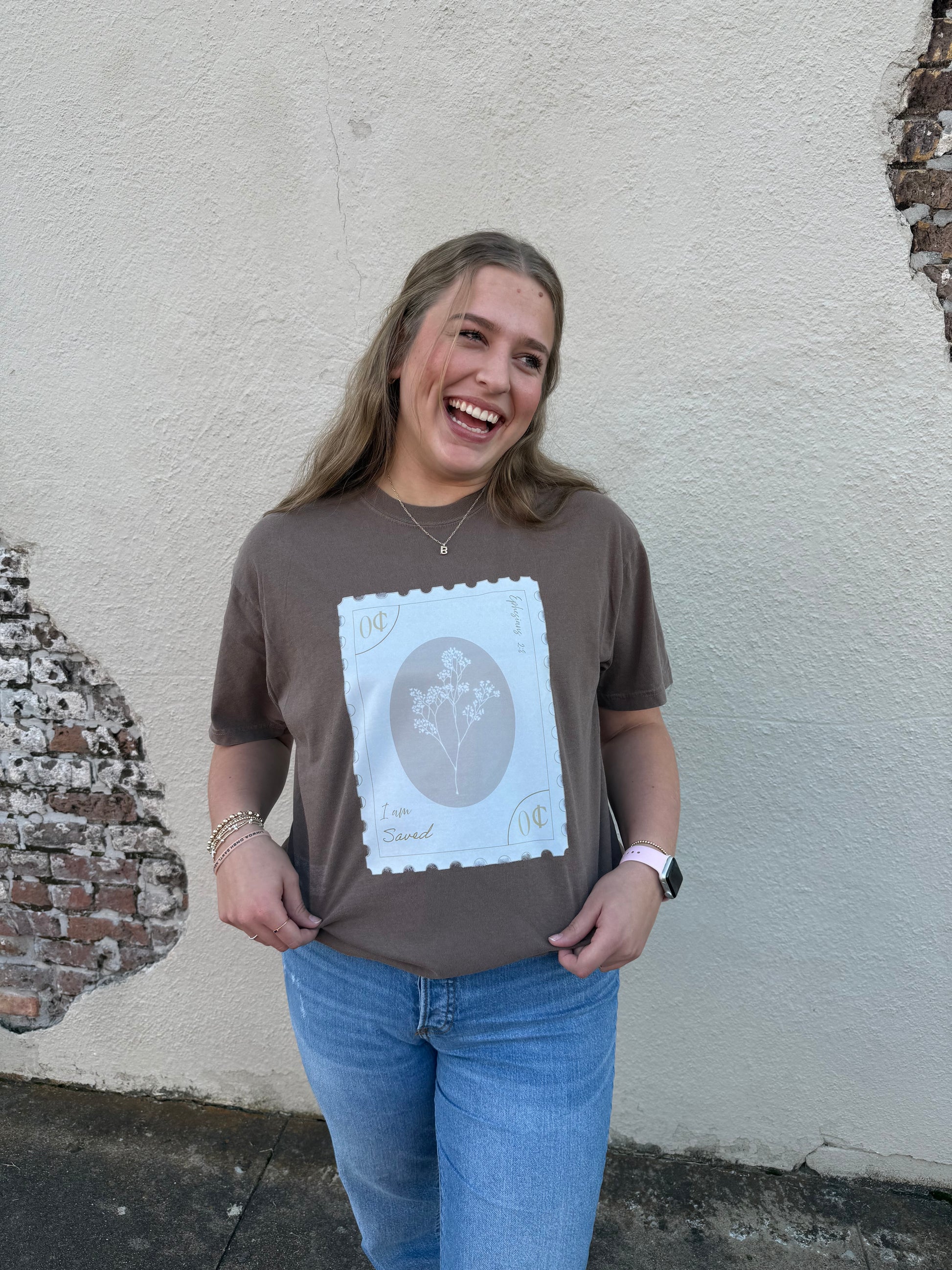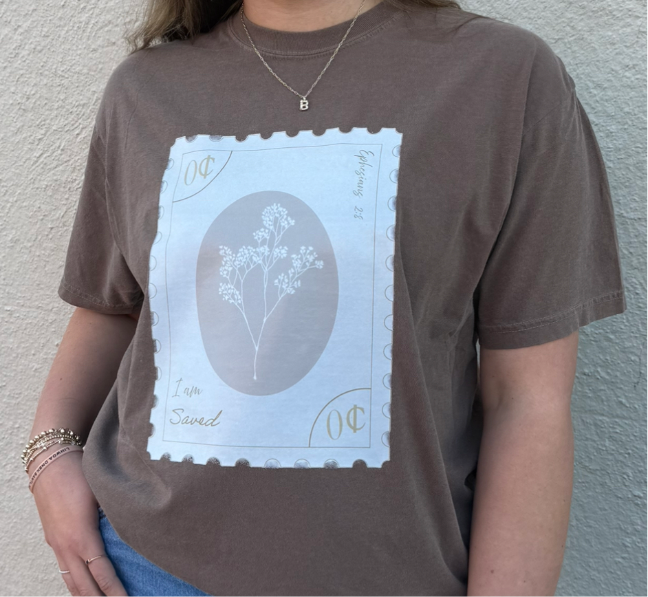 BY HIS GRACE WE ARE SAVED! POSTAGE STAMP SHIRT