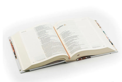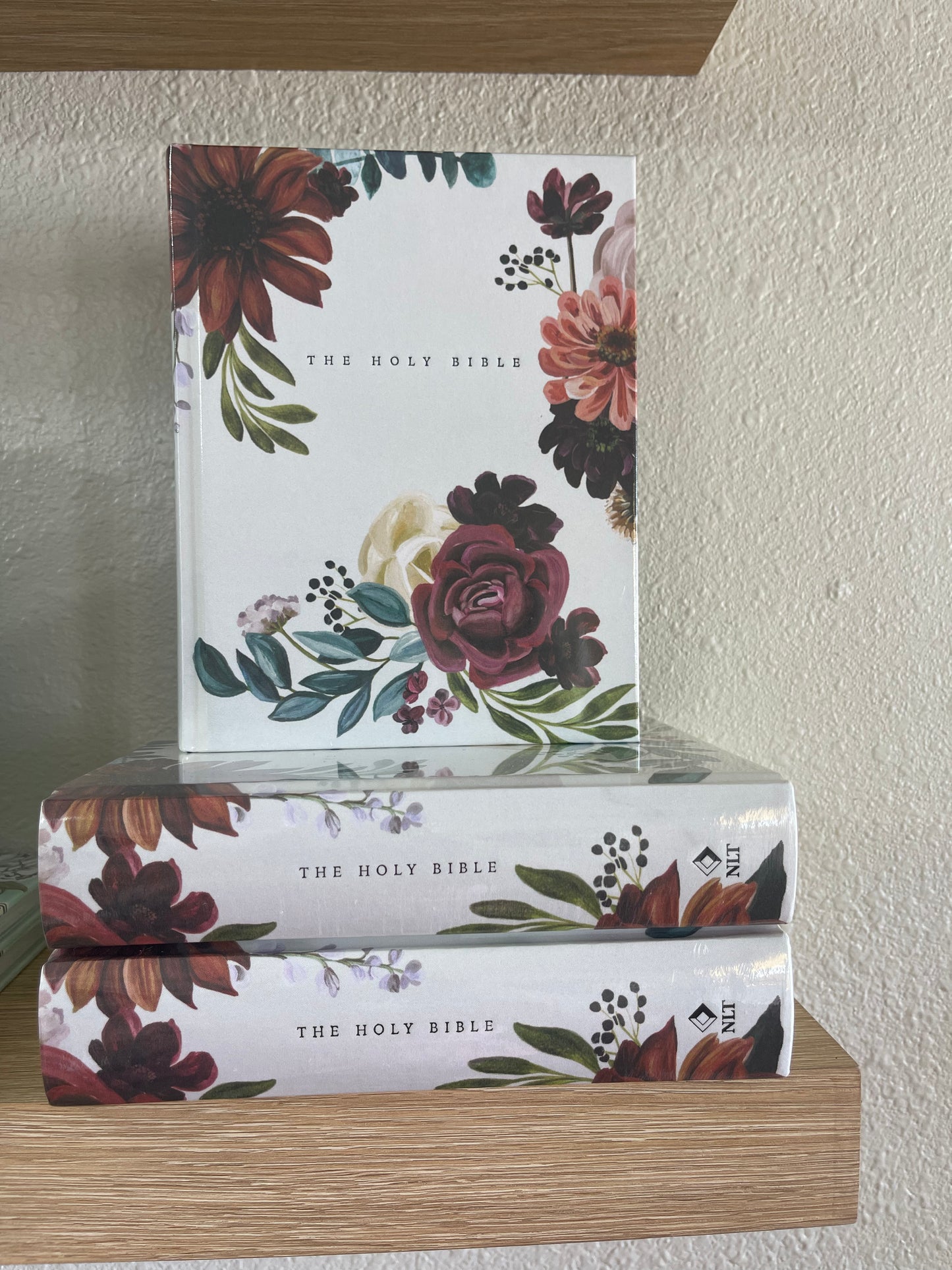 This jewel-toned Bible was inspired by the beautiful contrast between the stunning rose garden in the “parque retiro” and the white buildings along the streets of Madrid, Spain. The rose garden was added to the “parque retiro” by a former mayor and now boasts of over 4,000 roses. The breathtaking architecture in Madrid is home to a rich artistic culture and many famous pieces of art. This Bible marries the beauty of these elements together to create an immersive artistic experience. The back of this Bible features Luke 1:78-79, a reminder of God’s tender mercy and light. The boldness of the flowers arrayed against the light background are a reminder of the tenderness of our God who so carefully adorns the flowers and gives light to those who are in darkness. We pray that this Bible will be just that—a light to those who sit in darkness that they might be guided to a path of peace!