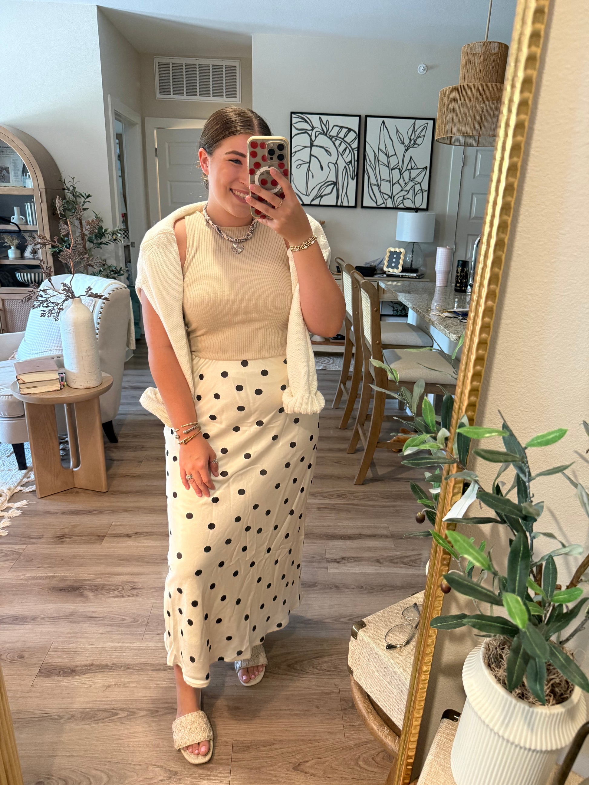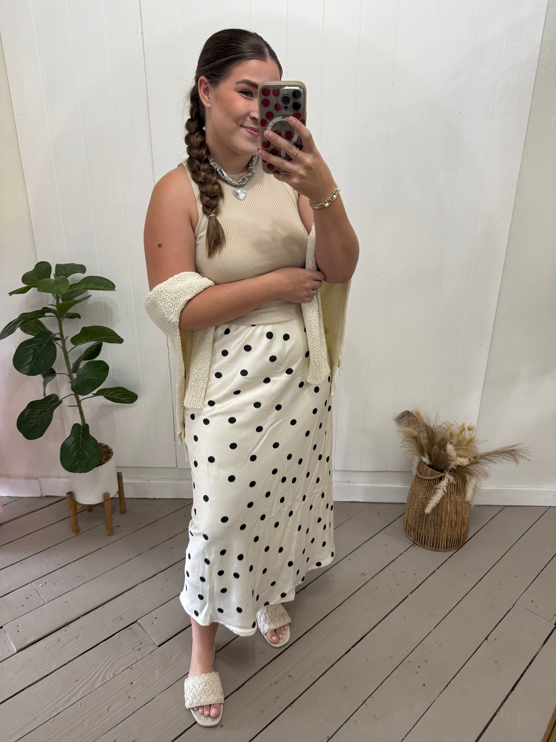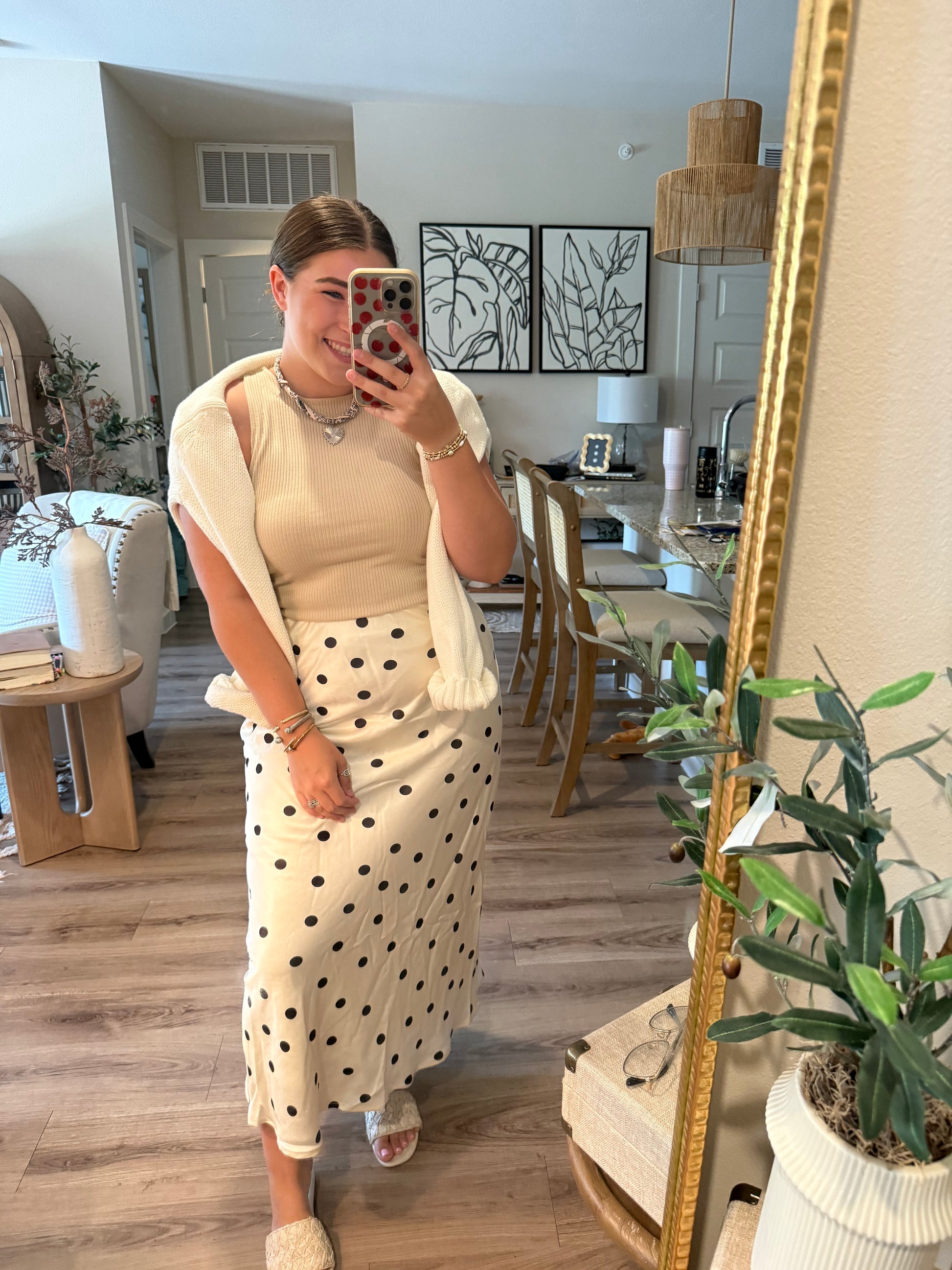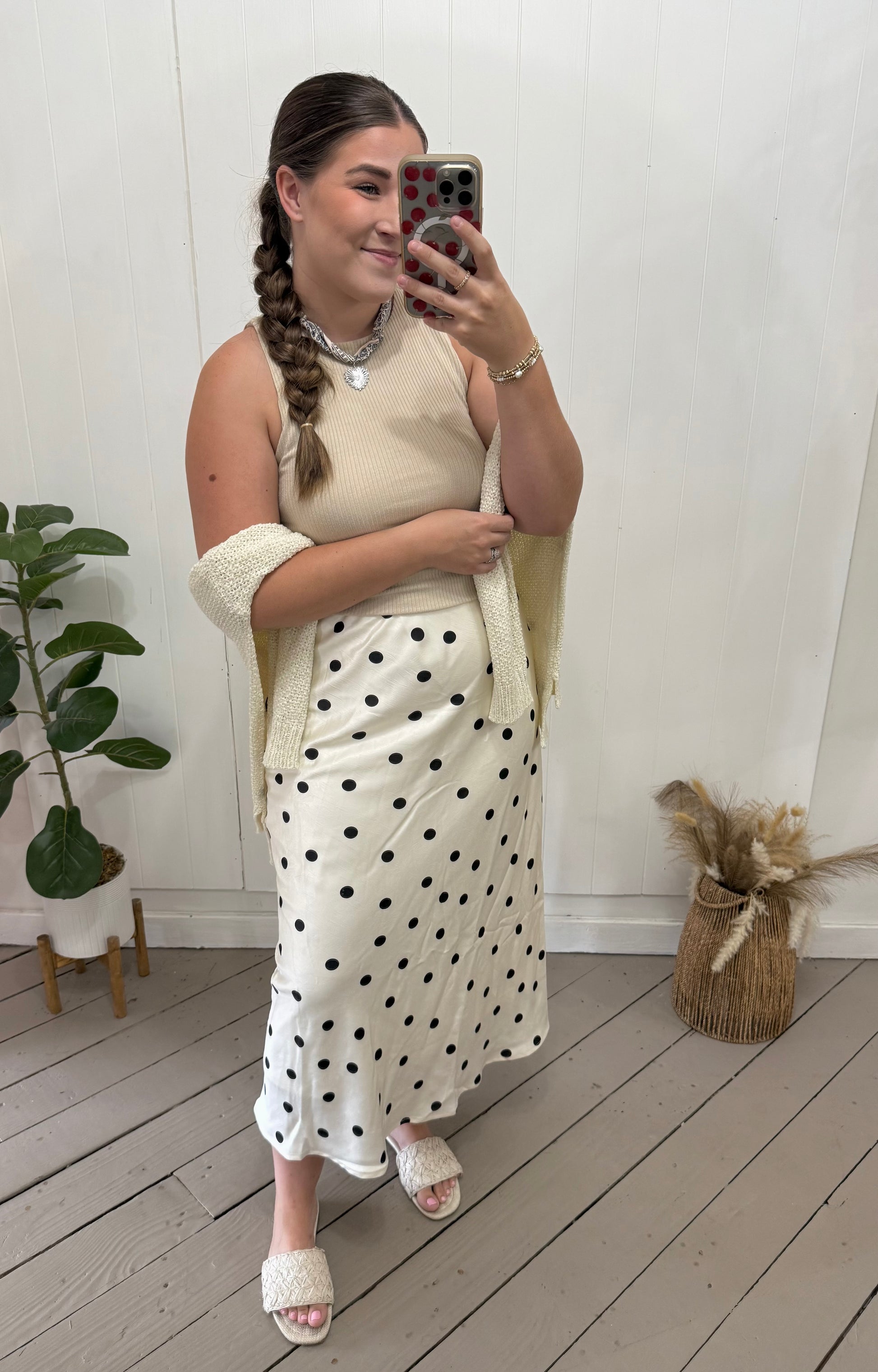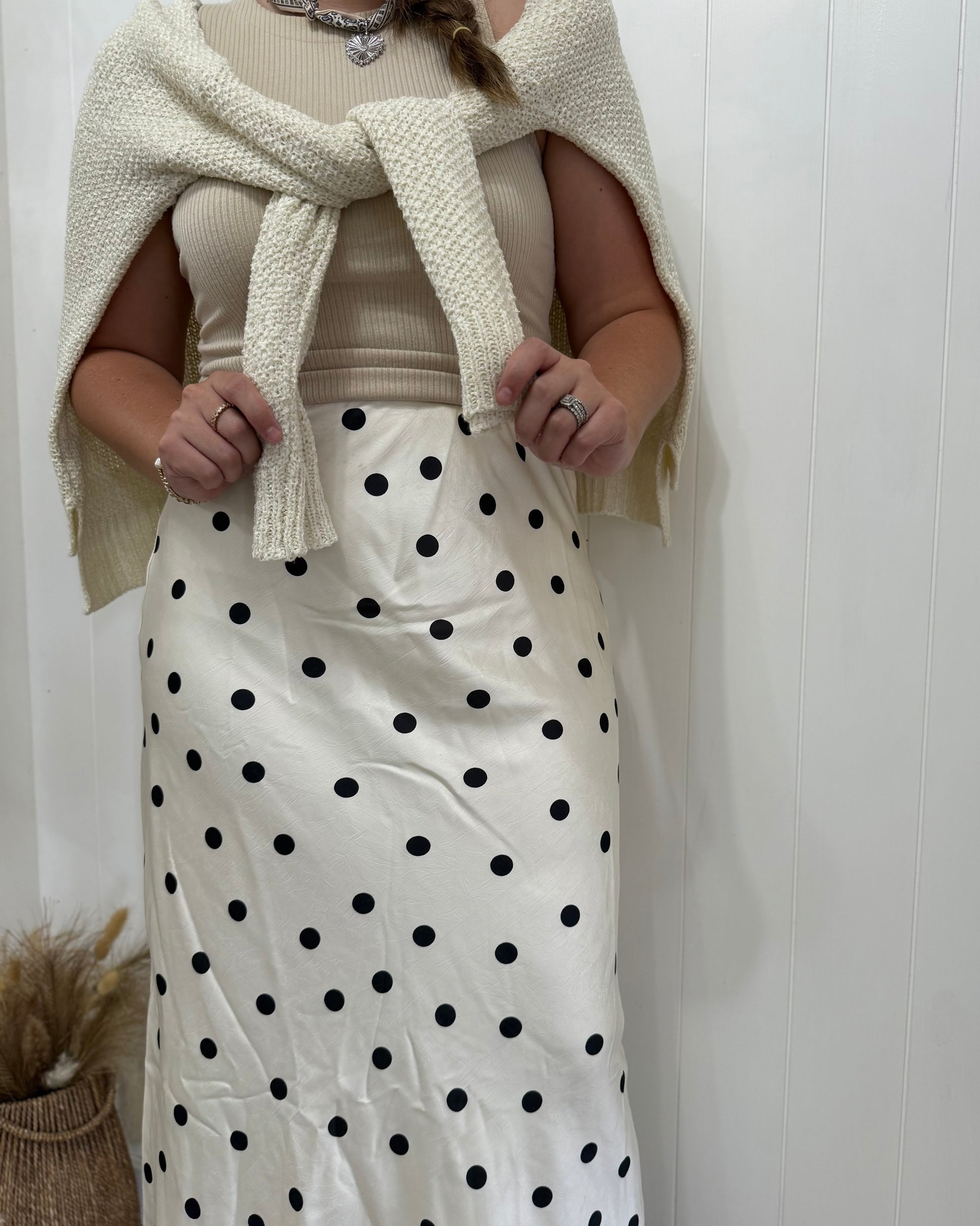 POLKA DOT PRINT MIDI SKIRT WITH ELASTIC WAISTBAND AND LINING