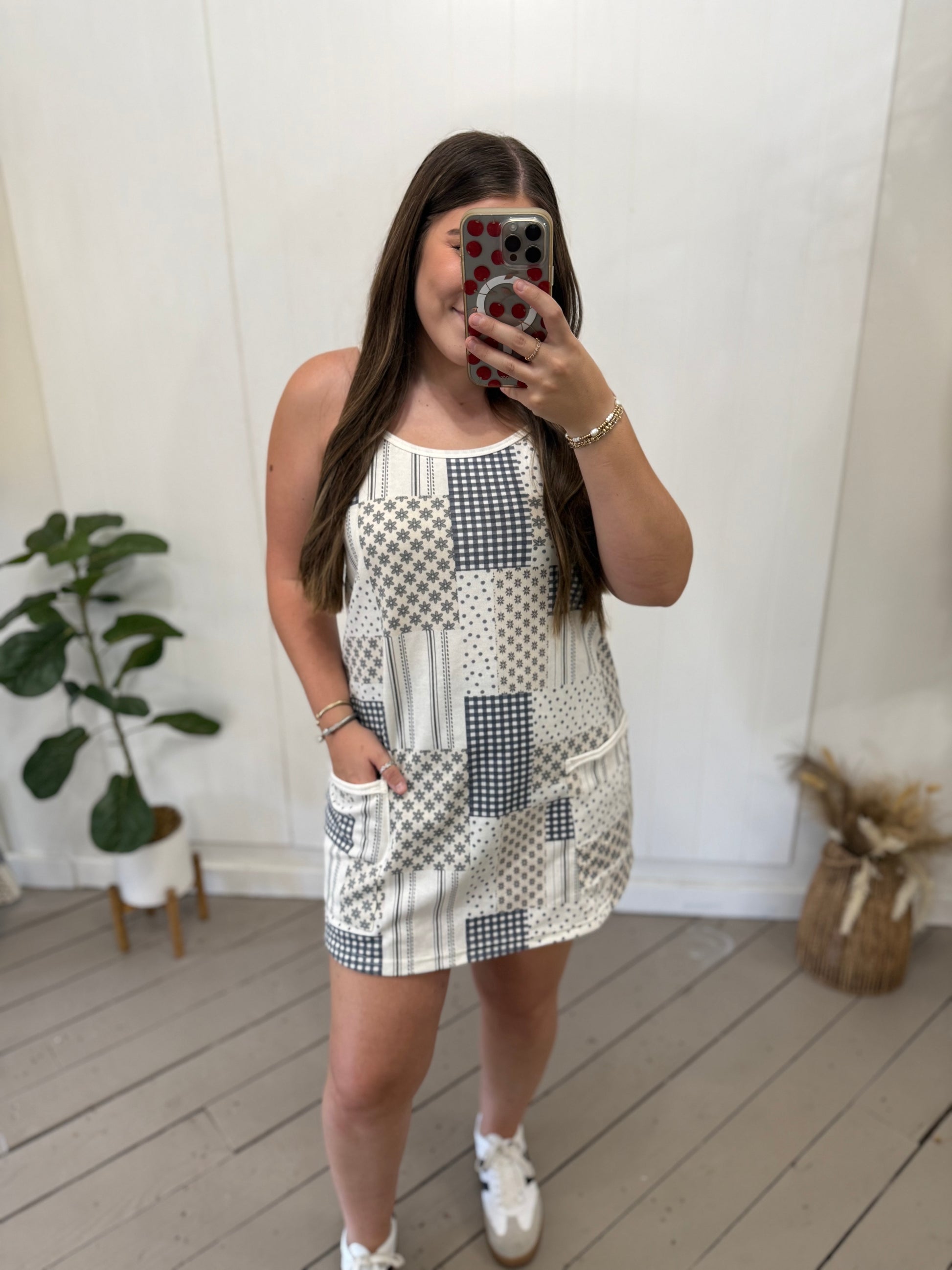 PRINTED COTTON TERRY MINI DRESS