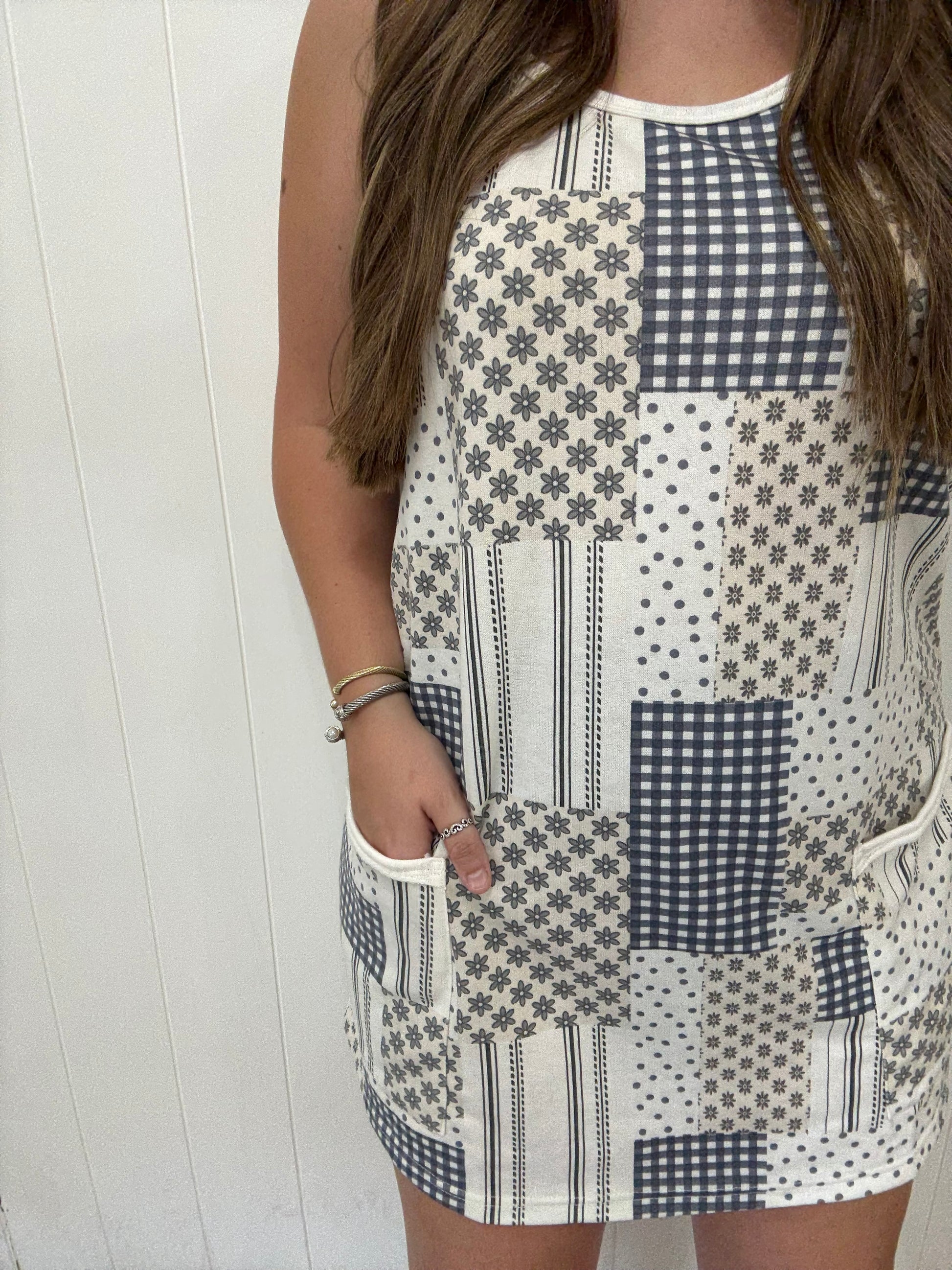 - printed - cotton terry fabric - patch pockets - sleeveless - raw edge finish