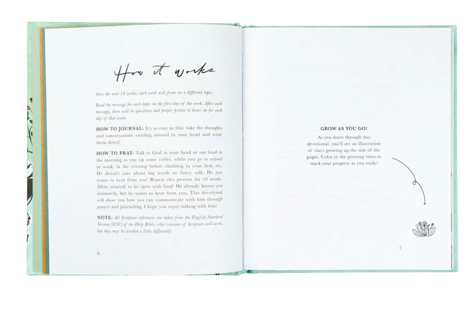 Each week covers a topic most high school girls will journey through in their high school season. Then, each day, girls will have the opportunity to open their Bibles to read God’s Word, take time to journal using a Scripture-based prompt, and spend time in intentional prayer with the Lord.