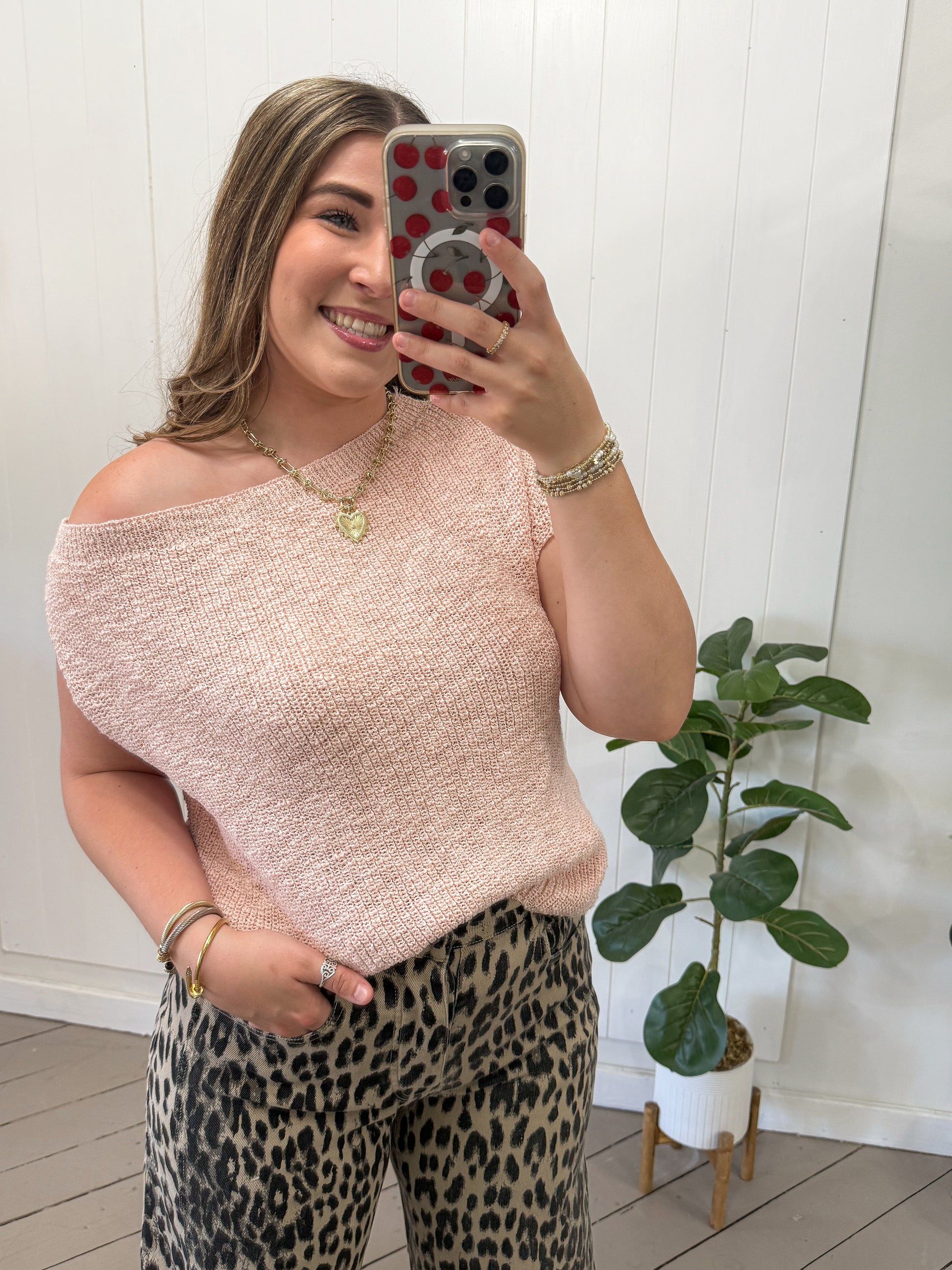 Features - One-shoulder - Slub textured - Lightweight sweater knit fabric - Sustainable: made with recycled polyester Contents - 50% RAYON 50% RECYCLED POLYESTER